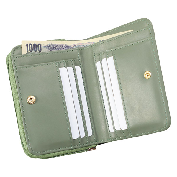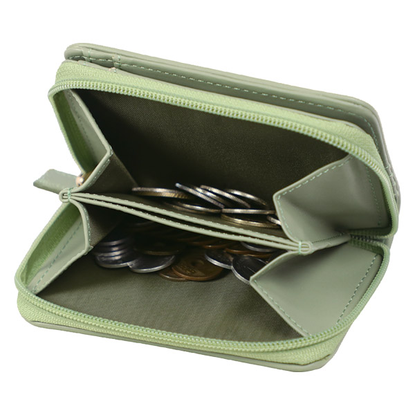 • メッシュ型押し コインが分けられる二つ折り財布 グリーン