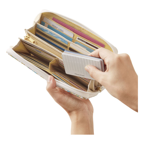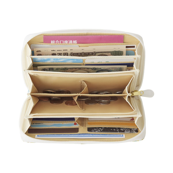 通帳も入る大きさ、コイン4分別の仕切付き、36枚以上のカードも入り大容量で便利な収納機能がもりだくさん!