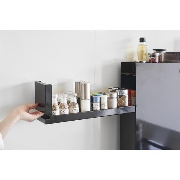 スチール製なのでマグネットフックなど付ければ、さらに収納効率アップ!