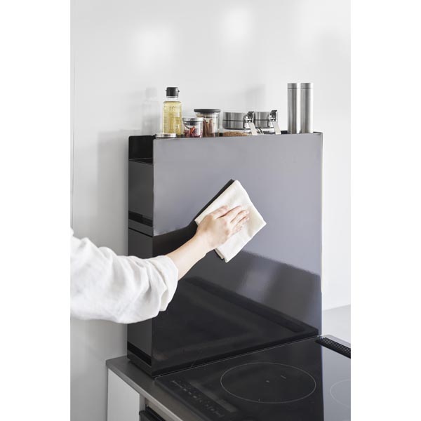 油跳ねで調味料が汚れるのを防ぐ大容量の2段ラック。